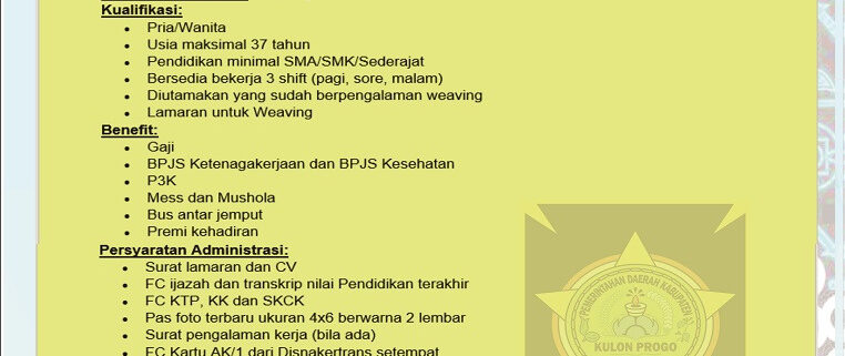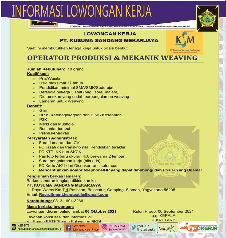 Lowongan Operator PT Kusuma Sandang Mekarjaya