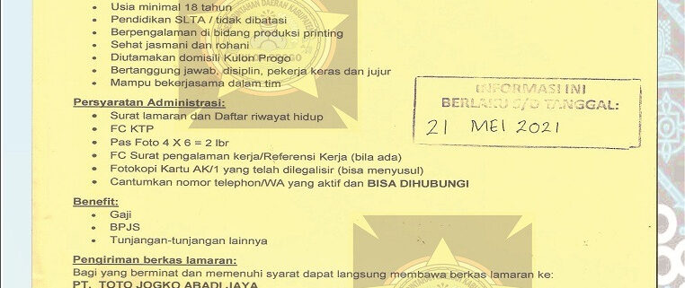 Lowongan PT Jongko Abadi Jaya