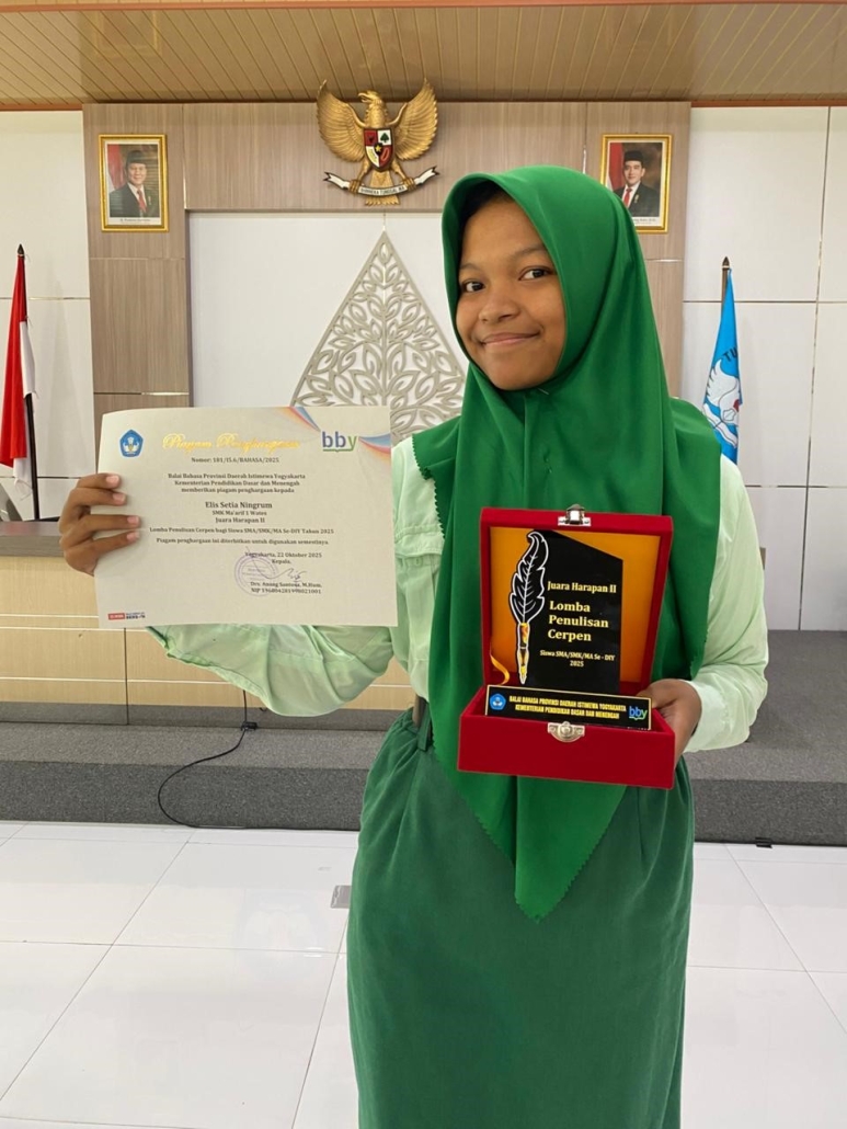 Prestasi ini menjadi bukti nyata bahwa siswa SMK Ma’arif 1 Wates tidak hanya unggul di bidang keterampilan teknis, tetapi juga memiliki potensi besar dalam dunia literasi. Semangat Elis Setia Ningrum diharapkan dapat memotivasi generasi muda lainnya untuk menulis, berkarya, dan mengangkat nilai-nilai luhur bangsa melalui sastra. (Omi)